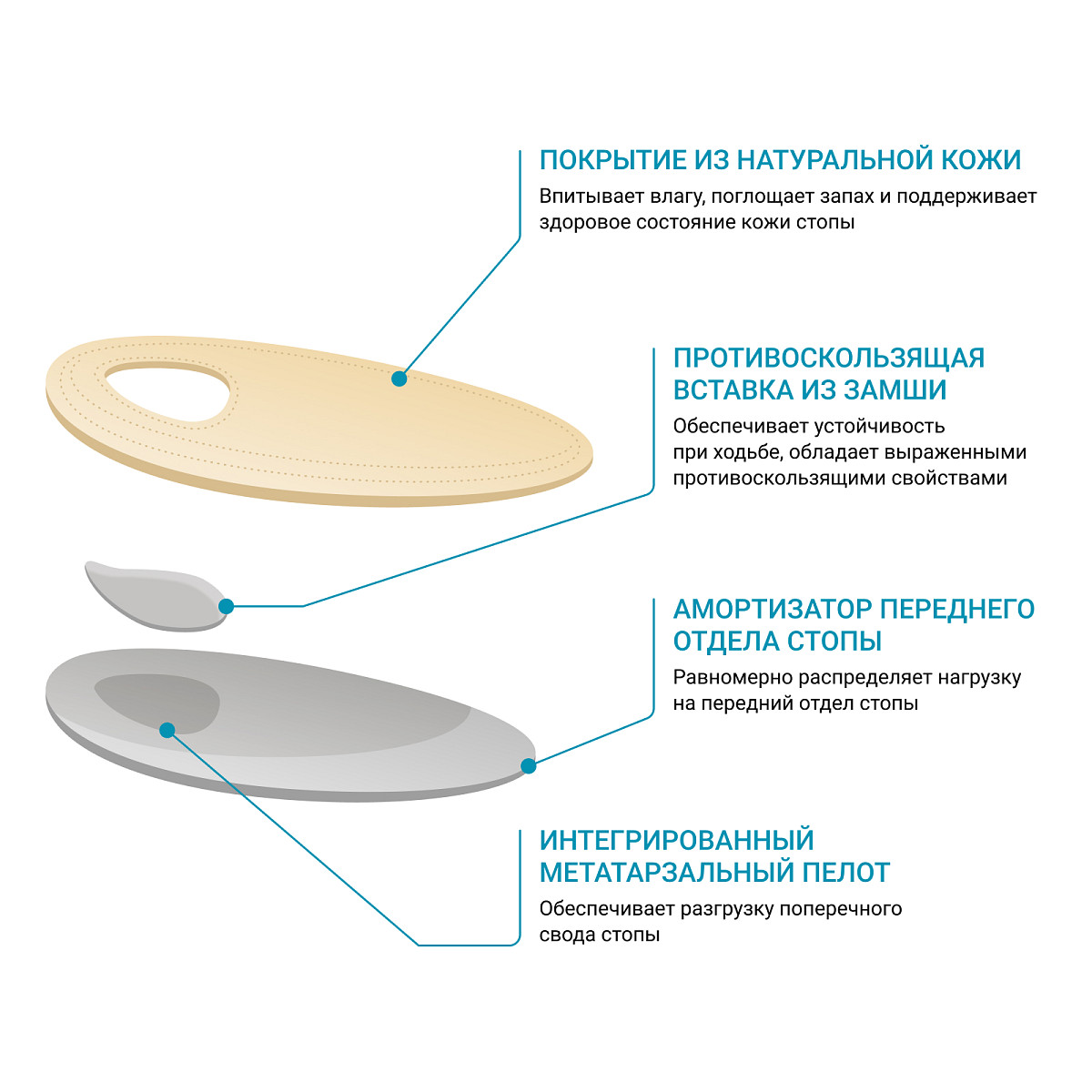 • интегрированный метатарзальный пелот обеспечивает разгрузку поперечного свода стопы.